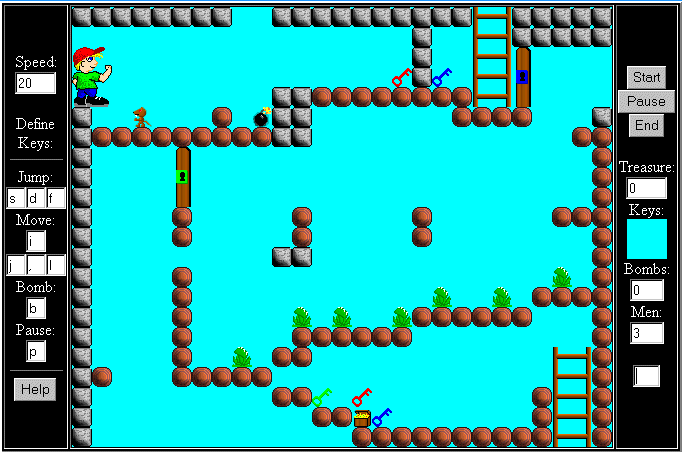 In fall of 1997, I had a very boring class, so during class I wrote a program called WEBTris. As soon as I put it on the Web, I discovered that "Webtris" already existed, so I added bombs and different levels to make it unique and called it Super WEBTris. I then decided to try my hand at a more difficult game. My goal was to make a full arcade-style game using only JavaScript. I called this "Project: BOB". During that same class, I began writing BOB, which soon evolved from a theoretical project to a major project. I put BOB on the Net in March 1998.